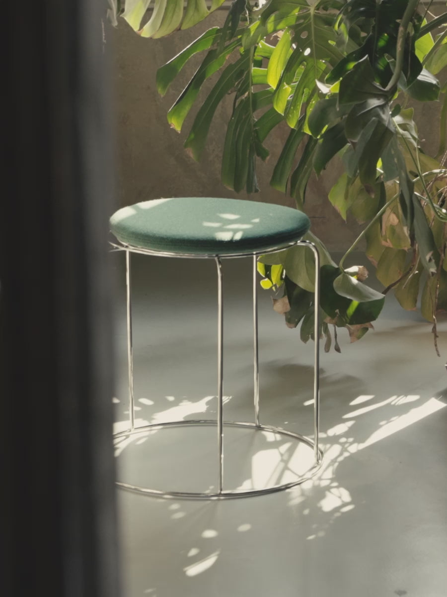 Die Neuauflage des leichten, stapelbaren Hockers ist ein typischer Vertreter von Verner Panton, denn er besteht aus Edelstahldraht, der eine einfache geometrische Form mit sich wiederholenden Mustern bildet. Der Hocker ist stapelbar und dient gleichzeitig als Beistelltisch. Eine Ikone aus den Archiven, die dazu bestimmt ist, ein Sammlerstück zu werden.Ursprünglich wurde der Wire im Jahre1981 auf den Markt gebracht. Die luftige Transparenz macht ihn zu einem vielseitigen Design, das sich für eine Vielzahl von Umgebungen eignet. Jeder Wire Stool kann mit abnehmbaren Sitzpolstern in jeweils vier Farben ausgestattet werden, die sich mit einem diskreten Magneten anheften.